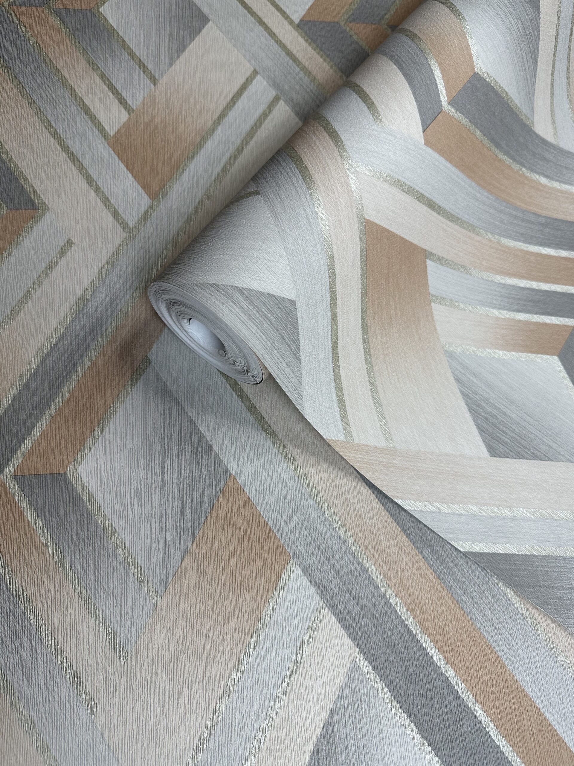 Geometric design with a metallic stroke.